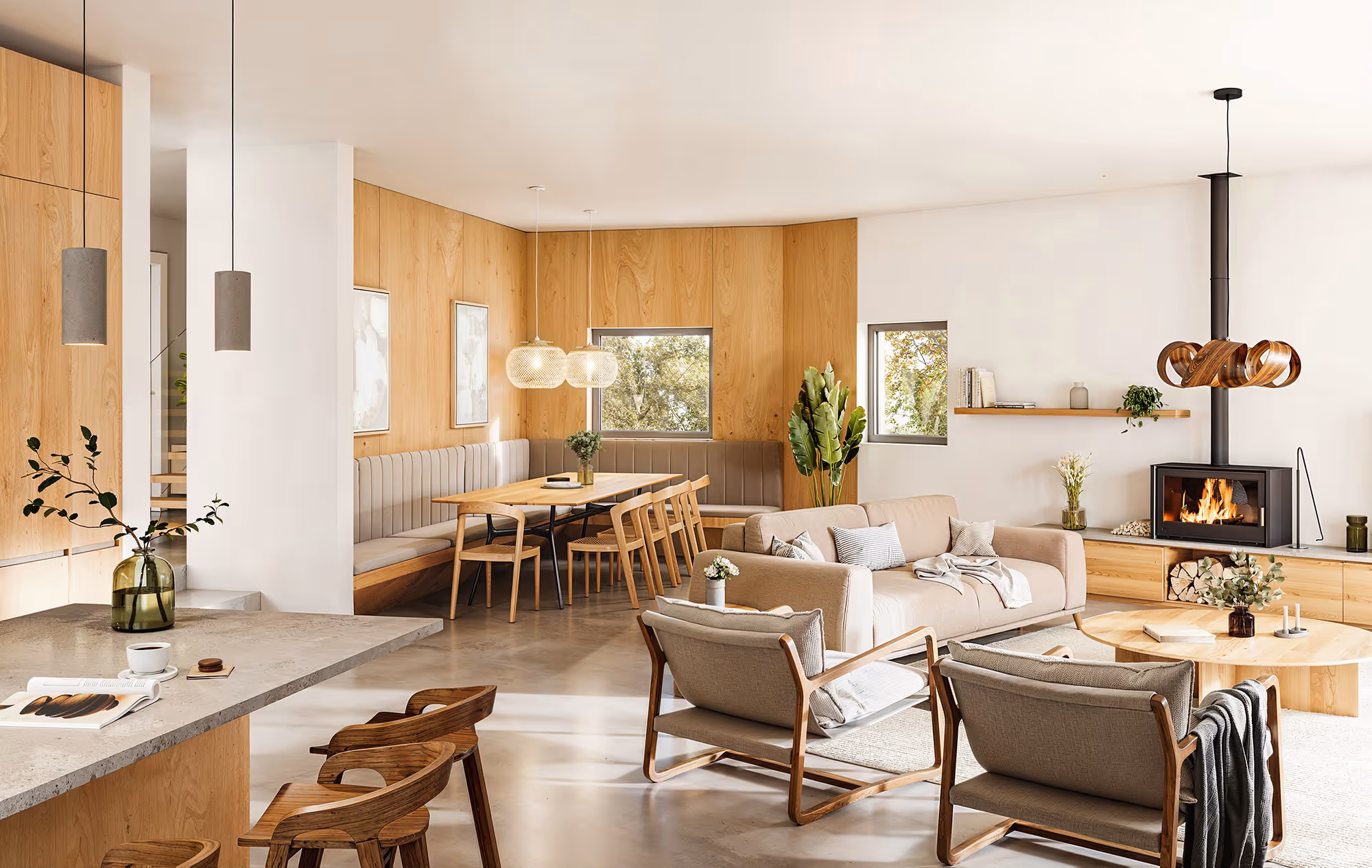 Created to support Hollaway’s proposal for two replacement dwellings in St. Margaret’s Bay, this set of images focuses on how the new architecture sits within its immediate landscape. The visuals communicate the low-lying, fragmented forms, the relationship to existing hedgerows, and the quiet material palette that anchors each house in the site’s natural contours. Interior scenes highlight the calm, open layout and the emphasis on daylight, while exterior views capture the softened presence of the buildings from the road and surrounding gardens. The aim was to present a precise and understated reading of the scheme, one that reflects its sensitivity to both setting and scale.